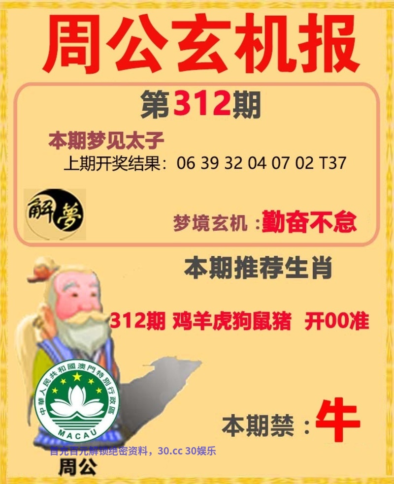 | 311期周公解梦 本期梦见:太子 梦境玄机:阴曹地府 本期推荐:狗兔牛马蛇鸡 本期禁肖:虎 |